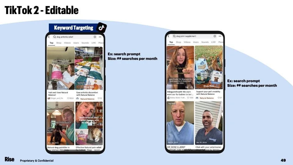 Client decks follow each brand’s visual system, anchored by Rise’s typography and design standards.